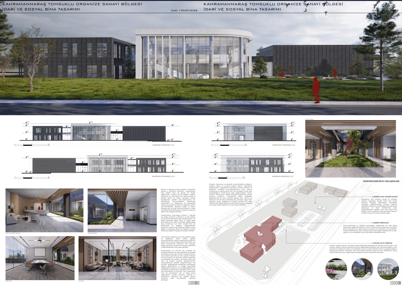 Tasarımlarında çevresel, sosyal ve ekonomik sürdürülebilirlik konusunu merkeze alan ve bunu destekleyen yenilikçi öneriler sunan ADD+ Partners Mimarlık ofisine, Tomsuklu OSB Yönetim Kurulu Başkanımız Mustafa Narlı ve Kahramanmaraş Ticaret ve Sanayi Odası Yönetim Kurulu Başkanımız Mustafa Buluntu tarafından ödülleri takdim edildi. Ödülü ADD+ Partners adına kurucu ortaklar Janseri Parlak ve Ahmet Yunus Parlak aldı..jpg)